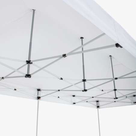 Tente pliante 3x6m offrant une surface couverte de 18 m². Bâche blanche renforcée de 300 g/m² enduction PVC 1 face, la tente pliante protège du vent, de la pluie et des UV. Structure hexagonale en aluminium de 40 mm légère et solide qui ne rouille pas. Ses dimensions et sa solidité font de cette tente pliable l’espace idéal pour un salon de jardin ou encore une réception. La tente pliante se monte et se démonte en trois minutes et nécessite aucun outil. La tente pliante est livrée avec son sac de transport équipé de roulettes et un kit d'arrimage pour sol meuble. Chaque pied et équipé d'une platine en acier galvanisé pour une fixation sur sol dur. Nous vous conseillons vivement de bien lester votre tente pliante avec des poids adaptés en vente sur notre site.
