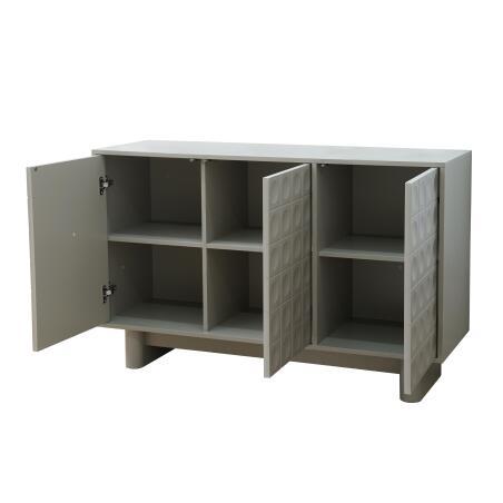 Découvrez notre buffet en mélaminé à 3 portes, un meuble élégant et fonctionnel qui s'intègre parfaitement dans tous les intérieurs. Avec des dimensions de L 124,5 x l 40 x H 78 cm, il offre un espace de rangement optimal tout en étant compact. Sa capacité de charge maximale de 50 kg et ses étagères pouvant supporter jusqu'à 8 kg par niveau garantissent robustesse et praticité. Grâce à son système d'ouverture Push-up, l'accès au contenu est simple et rapide. Fabriqué en panneau MDF recouvert de mélamine et doté de portes en PVC avec motifs sculptés en 3D, ce buffet allie esthétisme et durabilité. Le cadre en MDF creux et les pieds en peinture PU assurent une stabilité accrue, tandis que le bois d'eucalyptus choisi pour sa conception fait de ce meuble un buffet qui allie style moderne et fonctionnalité pratique.