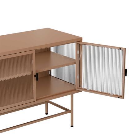 Le buffet GROOVY combine solidité et raffinement grâce à ses dimensions compactes de 120 cm de largeur, 40 cm de profondeur et 66 cm de hauteur, parfait pour optimiser votre espace de rangement. Fabriqué en acier laminé à froid avec une finition thermolaquée, il offre une excellente longévité ainsi qu’une résistance optimale. Ses 3 portes en verre trempé nervuré de 5 mm d’épaisseur, dotées d’un système d’ouverture magnétique, ajoutent une note contemporaine tout en facilitant l’accès à son contenu. Le buffet repose sur des pieds réglables de 350 mm, garantissant stabilité et adaptabilité sur différents types de sols. À l’intérieur, une étagère ajustable permet une organisation efficace de vos objets. La structure est renforcée par des tubes en acier de sections variées (20 x 20 x 1,0 mm et 15 x 15 x 0,8 mm), faisant de ce meuble un choix à la fois fonctionnel et esthétique pour votre intérieur.