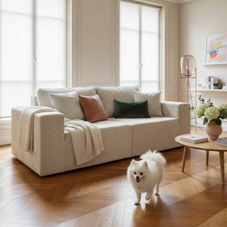 Le canapé 2 places en tissu avec coussins HECTOR allie confort et design moderne pour s’intégrer parfaitement à votre intérieur. Revêtu d’un tissu 100 % polyester certifié Oeko-Tex, il garantit douceur et durabilité. Son assise et son dossier sont composés de mousse haute densité (32 kg/m³) assurant un maintien optimal, avec une hauteur d’assise de 40 cm et une hauteur de dossier de 78 cm avec coussins. Modulable et spacieux, il mesure 200 cm de longueur, 100 cm de profondeur et 78 cm de hauteur, offrant un espace généreux pour accueillir confortablement deux personnes. Ce canapé est idéal pour allier esthétique, confort et fonctionnalité au quotidien. La livraison du canapé se fait sous vide, facilitant ainsi son transport et son installation.