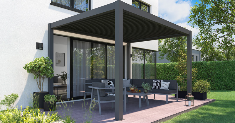 Une pergola bioclimatique aussi appelée tonnelle bioclimatique est une solution polyvalente et très contemporaine pour ombrager votre terrasse. Elle est constituée d'une structure en aluminium avec des lames orientables. Grâce à celles-ci, vous pouvez ajuster la quantité d'ombre désirée en fonction de l'intensité du soleil. En position ouverte, les lames permettent de profiter de la lumière naturelle, tandis qu'en position fermée, elles créent une ombre agréable. Certaines pergolas bioclimatiques (ou tonnelles bioclimatiques) sont également équipées de capteurs solaires et de capteurs de pluie, ce qui leur permet de s'adapter automatiquement aux conditions météorologiques. En optant pour une pergola bioclimatique, vous pouvez profiter d'un lieu ombragé tout en conservant une ventilation naturelle.