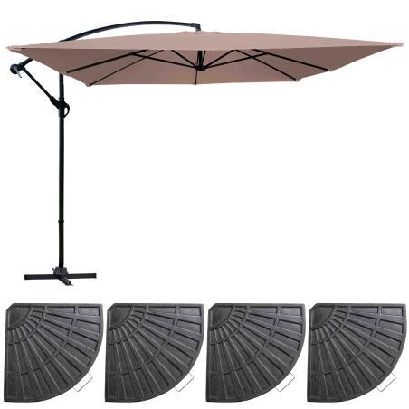 Stylé et moderne, le parasol est la nouvelle tendance outdoor actuellement. C’est une solution d’ombrage, aussi bien pratique que confortable, à utiliser sur votre balcon, terrasse ou pour n’importe quel projet d’aménagement d’extérieur. Excentré, le mat est sur le côté et il ne gêne pas. Vous pouvez ainsi utiliser cet accessoire de jardin aussi bien pour ombrer que pour vous créer un espace détente ou que vous voulez. Sa toile carrée en polyester lui apporte une touche de modernité. Elle est à même de couvrir une superficie de 9 m². Elle pourra donc vous servir aussi bien en été que le reste de l’année si vous souhaitez profiter de votre pièce à vivre en extérieur. Soutenu d’un mât central de 48 mm avec 8 baleines : le parasol est stable en plus d’être robuste. Pour en assurer la bonne fixation, au sol, vous pouvez utiliser les 4 dalles lestées en polyéthylène haute densité et béton. Chacune fait 45 x 45 x 4,4 cm. Ce qui est pratique en plus d’être sûr. C’est amplement suffisant pour supporter le mât en métal du parasol qui peut s’étendre jusqu’à 2 m de hauteur.