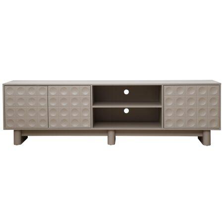 Découvrez notre meuble TV en mélaminé de 200 cm, alliant élégance et fonctionnalité. Avec des dimensions de L 200 x P 40 x H 58 cm, il dispose de trois portes pour un rangement optimal de vos appareils multimédias, tout en maintenant un aspect ordonné. Capable de supporter une charge maximale de 50 kg sur le dessus et 8 kg par étagère, il est parfaitement adapté aux téléviseurs de grande taille. Son plateau en MDF recouvert de mélamine et ses portes avec motifs sculptés en 3D ajoutent une touche moderne, tandis que le cadre en MDF creux assure stabilité et légèreté. Avec des pieds en peinture PU pour plus de durabilité, ce meuble en bois d'eucalyptus est un choix qui transformera votre salon en un espace chic et pratique.
