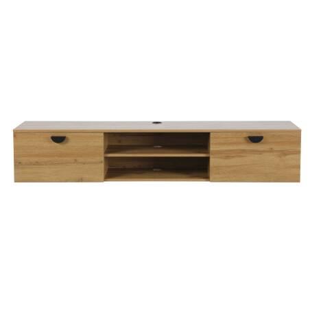 Le meuble TV suspendu JESSY, d’une longueur de 160 cm, allie style industriel et effet bois pour s’intégrer harmonieusement dans un intérieur moderne et chaleureux. Conçu en panneaux de particules recouverts de mélamine, il offre une finition robuste et facile à entretenir, tandis que ses poignées métalliques apportent une touche de caractère supplémentaire. Ce meuble dispose de deux portes, permettant un rangement discret et organisé de vos équipements multimédias ou accessoires. Pratique, il est équipé de trois trous pour le passage des câbles, situés à gauche de la partie droite ou à droite de la partie gauche, avec un cache plastique pour dissimuler proprement le trou du panneau supérieur. Ses dimensions sont de 160 cm de longueur, 30 cm de largeur et 30 cm de hauteur, offrant un espace suffisant sans encombrer votre pièce. Facile à installer, il est livré avec quatre fixations murales pour un maintien sécurisé et un effet flottant qui optimise l’espace au sol. Le meuble TV JESSY est ainsi une solution fonctionnelle et esthétique pour valoriser votre salon avec une touche industrielle tendance.