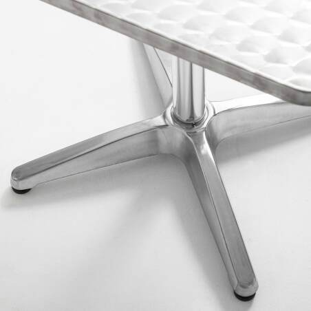 Découvrez notre pied de table ajustable en aluminium, conçu pour répondre aux besoins des professionnels à la recherche d'un mobilier fonctionnel et durable. Avec une hauteur modulable de 72 ou 110 cm, il s'adapte facilement à différents types de tables et d'environnements, tout en offrant une largeur de pied de 65 cm pour une stabilité optimale. Sa surface anodisée non seulement confère une allure élégante et moderne, mais la protège également contre les rayures et l'usure, garantissant un aspect impeccable même après une utilisation quotidienne intensive. Avec un tube de 6,5 cm de diamètre et une épaisseur de 1,5 cm, ce pied est en même temps résistant et léger, pesant seulement 2,9 kg, ce qui facilite son transport et son installation. Équipé de quatre embouts de protection réglables, ce pied de table s’ajuste parfaitement à toutes les surfaces, évitant les déséquilibres et les dommages au sol. Disponible en deux coloris contemporains, argenté et noir, il s'adapte aisément à différents styles de mobilier, que ce soit dans un restaurant, un bureau ou tout autre espace professionnel. Optimisez votre espace de travail avec ce pied de table ajustable, alliant robustesse, fonctionnalité et esthétique raffinée.