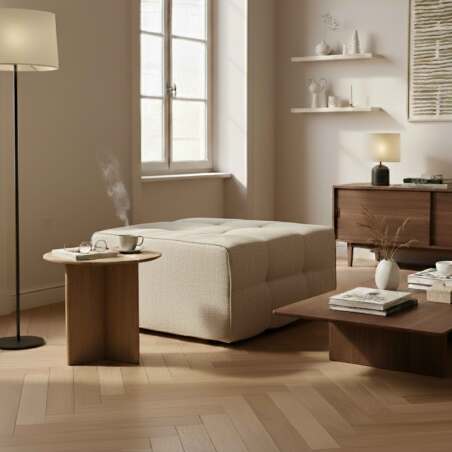 Le pouf en tissu SNUGGY allie confort et design avec ses dimensions généreuses de 83 x 83 x 40 cm et une hauteur d'assise de 42 cm, idéal pour une personne. Sa structure est composée d'un rembourrage en mousse haute résilience de 32 kg/m³ associé à des ressorts à poche, garantissant maintien optimal et durabilité, reposant sur un fond antidérapant pour une stabilité renforcée. Le pouf est revêtu d’un tissu effet lin élégant et résistant (95 % polyester, 5 % nylon, 340 g/m²), offrant une texture douce et agréable au toucher et un entretien facile. Robuste, il supporte un poids maximal de 110 kg. Pour plus de praticité, la livraison se fait sous vide pour faciliter le transport et la manutention. Parfait pour compléter un salon ou un espace détente, le pouf SNUGGY s’intègre harmonieusement avec les modules et ensembles SNUGGY, pouvant également servir de méridienne, offrant ainsi une solution modulable et personnalisée alliant robustesse, confort et style contemporain.