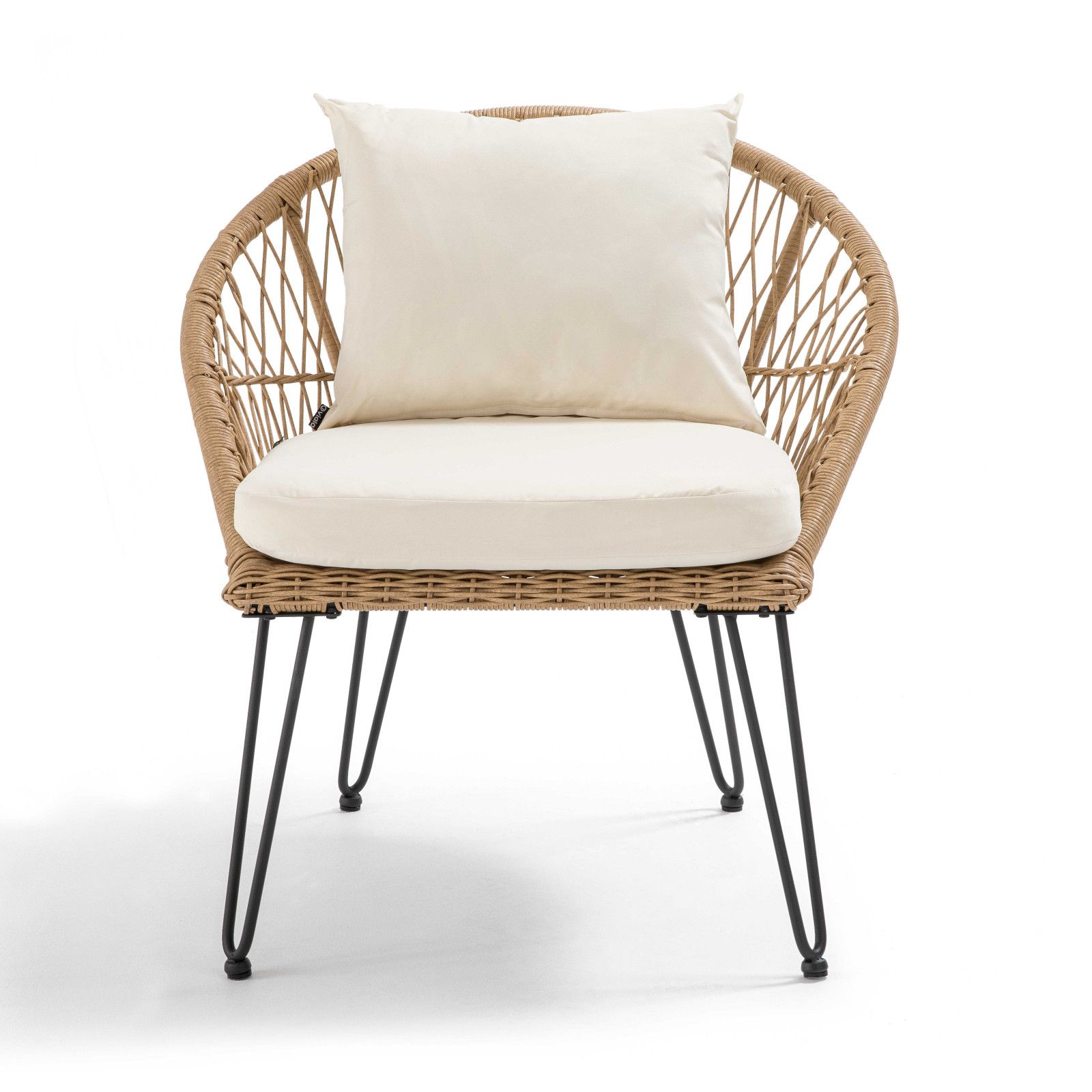 Le salon de jardin BORA BORA est esthétique, confortable et pratique. Avec son tressage à la main soigné et des fils de résine choisis dans des coloris naturels, il se rapproche des teintes du rotin. Assise profonde, dossier légèrement incliné, coussins moelleux pour l’assise comme pour caler le dos : il vous promet d’irrésistibles moments de détente. On aime la forme triangulaire de la table basse. Conçu pour vivre en extérieur, les meubles sont résistants. Le tressage à la main et les fils de résine sont robustes, ne craignant ni la détérioration ni la décoloration. La structure des 2 fauteuils comme de la table est réalisée en acier, recouvert d’une peinture époxy et traité anti-corrosion : vives la légèreté, la résistance aux intempéries comme au soleil, sans craindre la rouille. Le plateau de la table, de forme triangulaire, est en aluminium. Les coussins sont déhoussables pour un nettoyage facile.