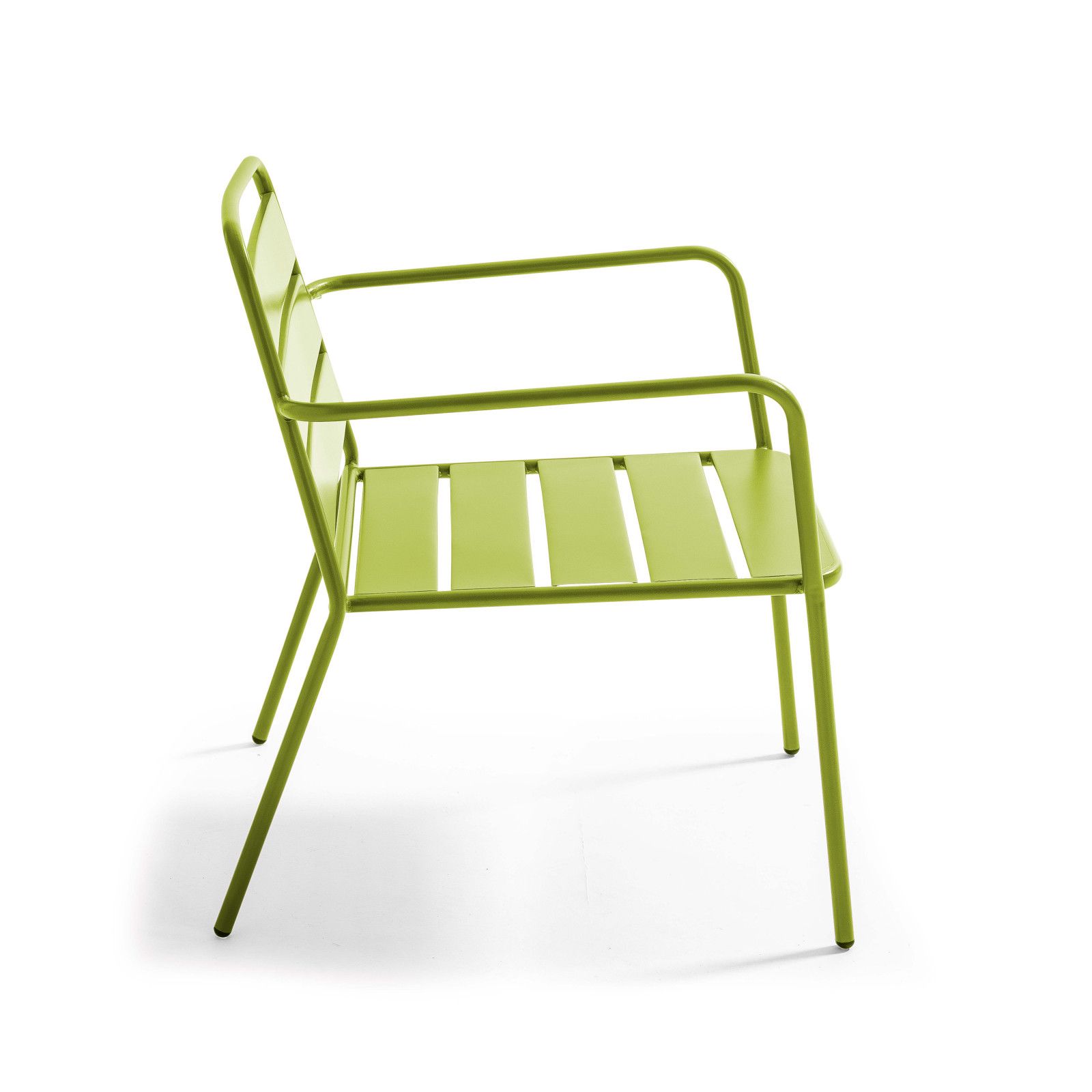 L'ensemble PALAVAS est composé d’un banc d'extérieur en acier 2 places et de 2 fauteuils de jardin aux dossiers parfaitement inclinés pour une ambiance décontractée. En acier thermolaqué, le mobilier de jardin en métal est facile à vivre : léger, résistant aux intempéries et facile d'entretien. Les fauteuils s’empilent sur le canapé ce qui permet de gagner de la place et facilite nettement le stockage. Ils sont en acier coloré traité époxy est conçu avec de larges lattes spécialement pensées pour votre confort. L'ensemble Palavas trouvera sa place aussi bien sur une terrasse qu'en intérieur. Vous pourrez retrouver des tables basses supplémentaires dans notre catalogue pour compléter votre salon de jardin.