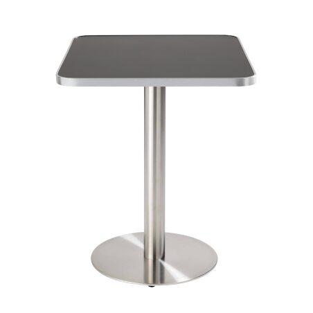 Découvrez cette table à manger compacte de 60 x 60 cm pour 2 personnes, fabriquée en contreplaqué avec un revêtement stratifié et des bords en aluminium. Elle est dotée d'un cadre en aluminium et d'une colonne en acier inoxydable de Ø 7,6 cm, offrant une excellente stabilité. Le plateau supérieur en acier mesure 30 x 30 cm, parfait pour des repas conviviaux. Sa base en acier de Ø 45 cm garantit un bon appui, tandis que les cinq embouts de pied noirs réglables permettent d’adapter la table à tous les types de sols. Pratique et élégante, elle s'intègre facilement dans tous les intérieurs.
