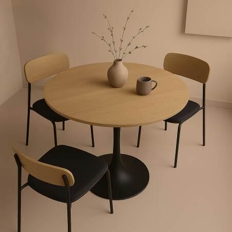Table à manger ronde en métal et plaquage bois 4 personnes