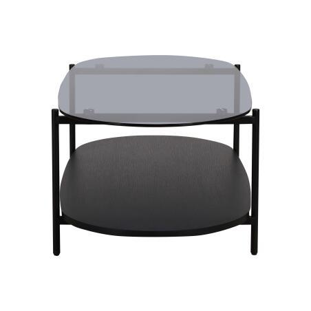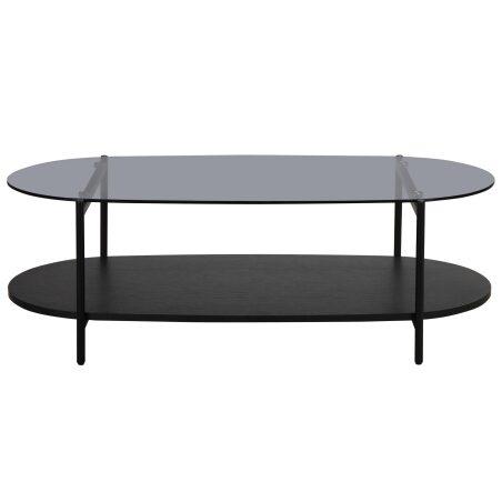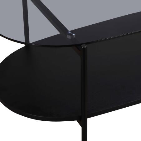 Table basse en verre fumé et effet bois ovale 120 x 55 x 40 cm