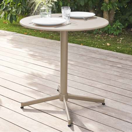 Salon 4 places en métal Palavas pour le jardin, incluant une table de jardin ronde avec plateau inclinable et ses 4 fauteuils empilables. Avec une conception aussi robuste que pratique, le salon de jardin en métal équipera idéalement votre terrasse ou balcon et peu encombrant à stocker. L'ensemble bénéficie des avantages phares de la gamme Palavas, avec un design 100% acier thermolaqué : la table inclinable et ses fauteuils de jardin sont capables de supporter des charges élevées. Le salon de jardin 4 places est entièrement traité à la peinture époxy qui le protège contre les risques de corrosion : il peut être utilisé en plein air au quotidien et n'exige pas d'attention particulière. Le plateau de la table de jardin ronde se rabat sur le côté via une poignée pour le blocage et le déblocage, et les fauteuils en acier sont empilables pour une gestion optimale de l'espace disponible lors du rangement. L'assise des fauteuils de jardin est ajourée et empêche la stagnation des eaux de pluie : le salon de jardin en métal ne requiert quasiment aucun entretien.