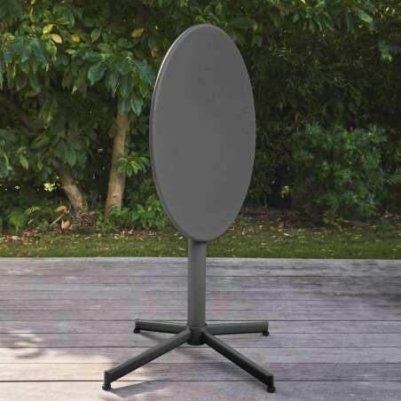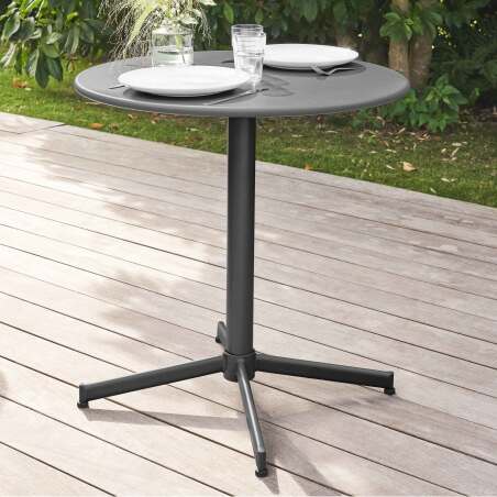 La table de jardin bistrot ronde PALAVAS est parfaite pour vos apéritifs ou pauses café en extérieur, alliant design moderne et praticité. Son plateau rond rabattable facilite le rangement et limite l’encombrement, grâce à un mécanisme simple et intuitif : une poignée permet d’incliner le plateau en le bloquant ou débloquant aisément. Avec un diamètre de 70 cm, le plateau peut accueillir confortablement 2 à 4 personnes. Fabriquée en acier thermolaqué avec peinture époxy résistante, la table repose sur un pied central stable équipé de 4 patins réglables, assurant une stabilité parfaite même sur sols légèrement irréguliers, que ce soit sur la terrasse ou dans le jardin. Son design contemporain et fonctionnel en fait un choix idéal, et le montage facile ne vous prendra que 3 minutes (visserie et notice incluses).