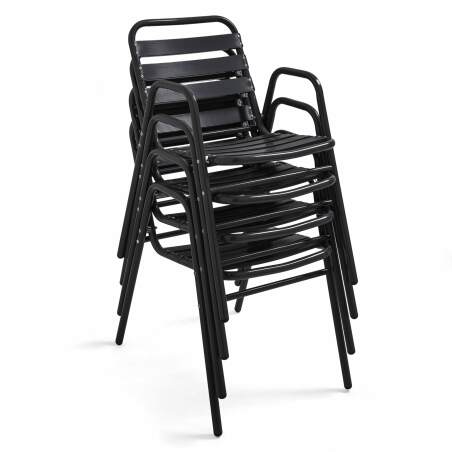 Ensemble comprenant une table en bois et métal ainsi que 2 chaises avec accoudoirs de terrasse de qualité professionnelle, adapté aussi bien aux particuliers qu'aux professionnels. La table en bois de frêne et aluminium, accompagnée de ses 2 chaises avec accoudoirs 100% aluminium, est spécialement conçue pour résister à une utilisation intensive en extérieur, éliminant tout risque de rouille ou d'altération avec le temps. Son design ergonomique est pensé pour minimiser les besoins d'entretien. Le plateau de la table en bois naturel est constitué de 11 lattes d'une épaisseur de 1,8 cm, vernies pour assurer une longévité accrue. Les patins antidérapants ajustables sur le pied en aluminium garantissent une stabilité parfaite sur toutes les surfaces. Les chaises avec accoudoirs de terrasse, entièrement en aluminium, sont non seulement légers et extrêmement robustes, mais également empilables, offrant un gain d'espace appréciable lors du stockage. L'assise et le dossier des fauteuils en métal sont dotés de lattes ajourées permettant un drainage naturel de l'eau pendant les épisodes pluvieux. Ils sont aussi munis de patins antidérapants pour assurer une stabilité optimale.