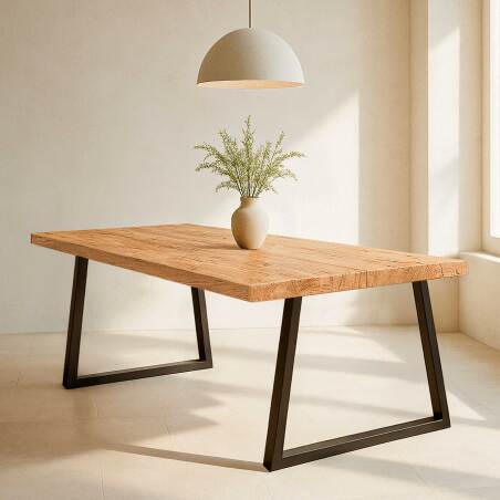 Un style audacieux qui joue avec les formes et les matériaux, anciens et contemporains : la table d'intérieur Inga ose une esthétique fascinante et hors du temps ! Ses pieds en trapèzes sont conçus en métal pour une solidité à toute épreuve, et supportent un grand plateau en chêne certifié FSC® 100%, offrant une apparence contrastée et chic, qui respire une atmosphère à la fois chaleureuse et classieuse. La table INGA bois et métal est extrêmement solide : le bois de chêne est traditionnellement reconnu pour sa solidité et sa beauté. Le plateau est disponible en plusieurs dimensions : 160 cm pour 6 personnes, 200 cm pour 8 personnes et 240 cm pour 10 personnes.